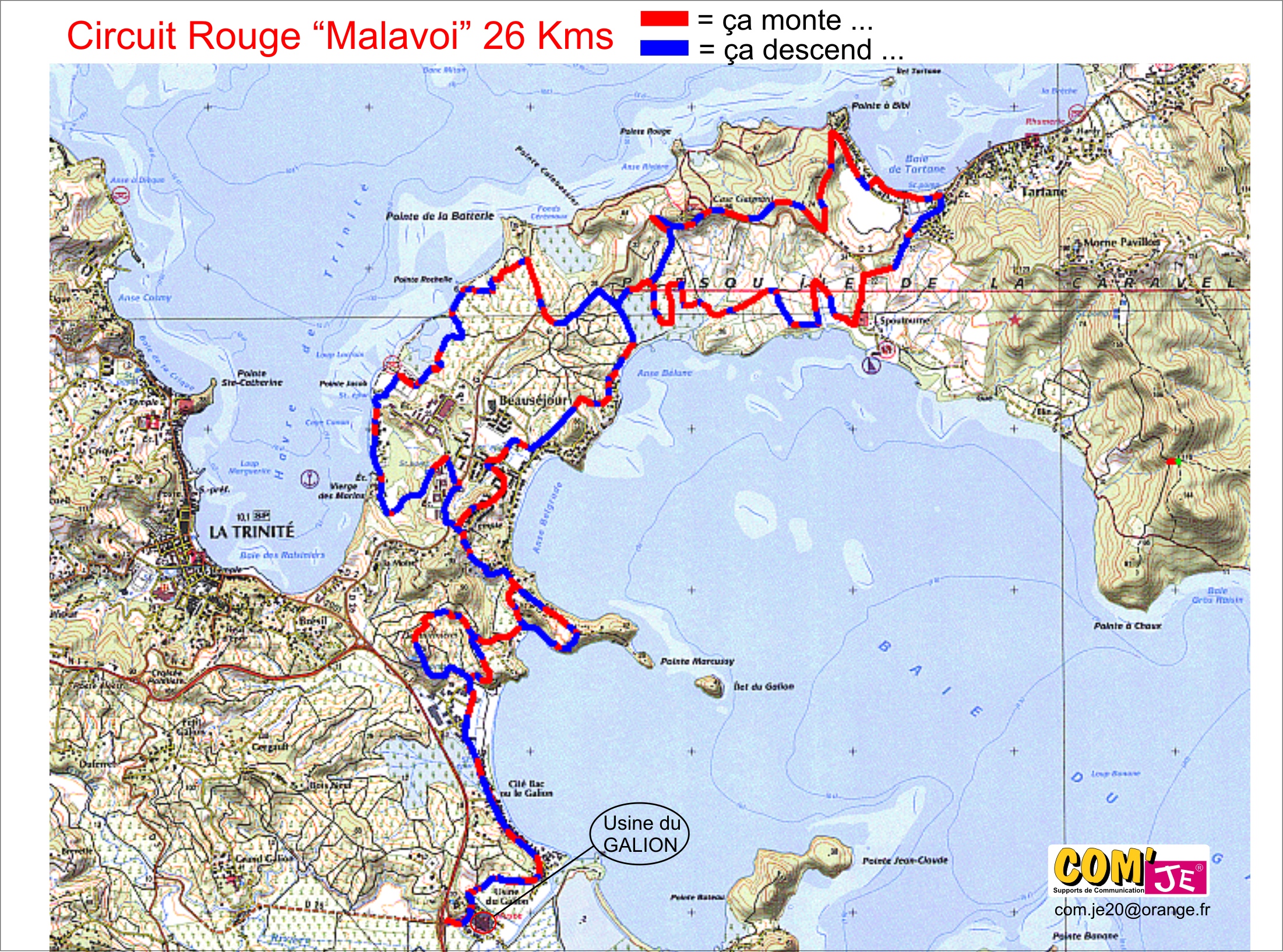 Pour te faire une petite idée du parcours de ton choix. Voici le circuit Rouge "Malavoi" de 26 kms.